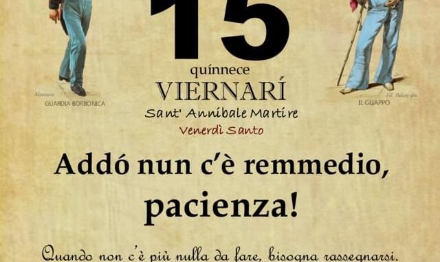 ‘O PRUVERBIO D’ ‘O JUORNO. Venerdì 15 aprile 2022 15/04/2022 binews.it ATTUALITA', EVIDENZA, Il Proverbio del Giorno 0 di Gianni PolverinoAddó nun c’è remmedio, pacienza! Quando non c’è più nulla da fare, bisogna rassegnarsi.
