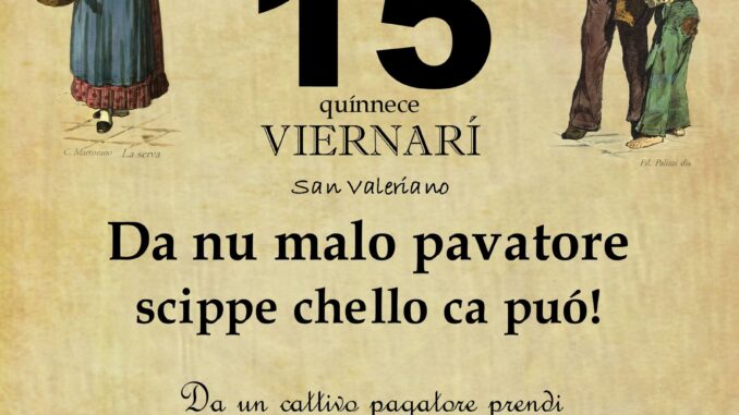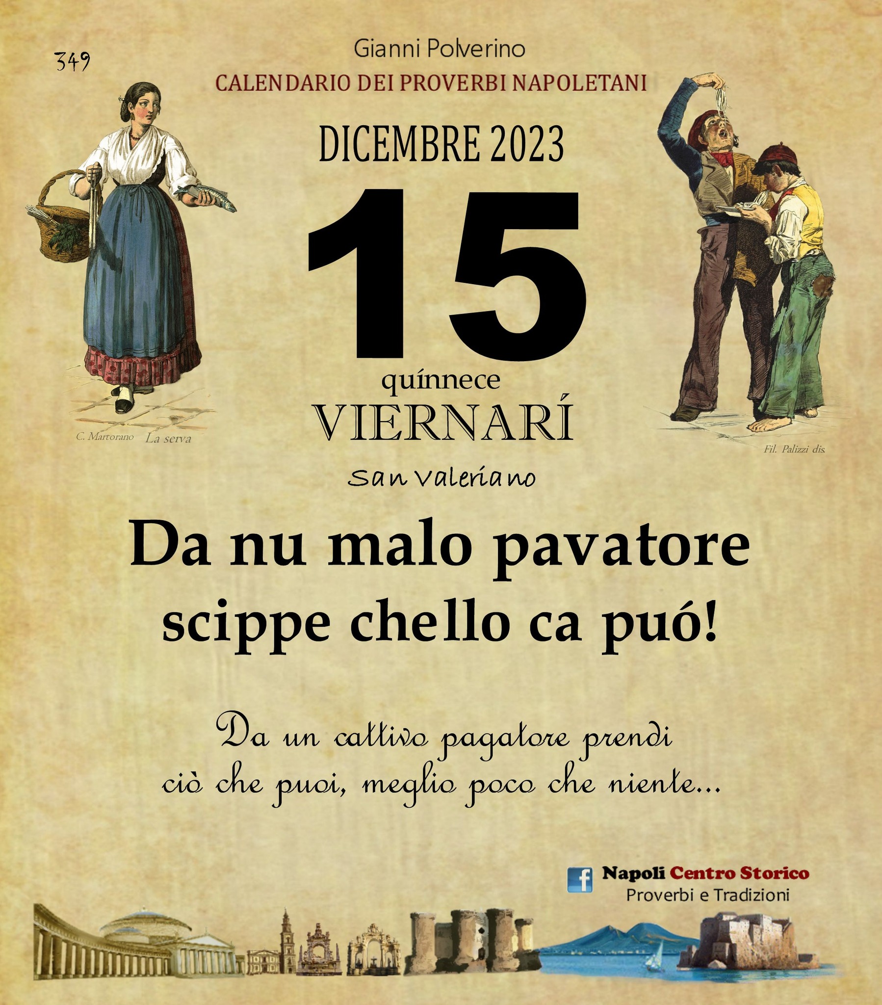 ‘O PRUVERBIO D’ ‘O JUORNO . Venerdì 15 dicembre 2023 15/12/2023 binews.it ATTUALITA', EVIDENZA, Il Proverbio del Giorno 0 di Gianni Polverino Da nu malo pavatore scippe chello ca puó! Da un cattivo pagatore prendi ciò che puoi, meglio poco che niente.