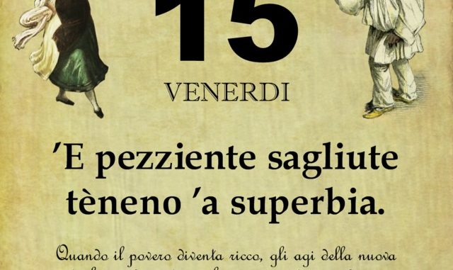 ‘O PRUVERBIO D’ ‘O JUORNO. Venerdì 15 novembre 2019 15/11/2019 binews.it ATTUALITA', EVIDENZA, Il Proverbio del Giorno 0 di Gianni Polverino ’E pezziente sagliute tèneno ’a superbia. Quando il povero diventa ricco, gli agi della nuova vita fanno dimenticare la sua primitiva condizione e aumentare a dismisura la sua superbia.