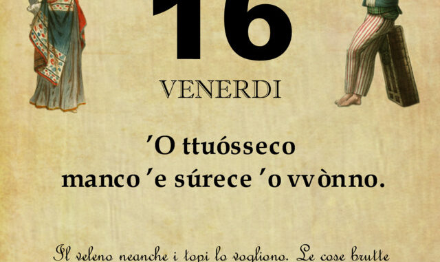 ‘O PRUVERBIO D’ ‘O JUORNO. Venerdì 16 ottobre 2020 16/10/2020 binews.it ATTUALITA', EVIDENZA, Il Proverbio del Giorno 0 di Gianni Polverino ’O ttuósseco manco ’e súrece ’o vvònno. Il veleno neanche i topi lo vogliono. Le cose brutte e cattive sono evitate da tutti.