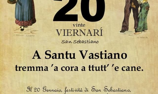 ‘O PRUVERBIO D’ ‘O JUORNO. Venerdì 20 gennaio 2023 20/01/2023 binews.it ATTUALITA', EVIDENZA, Il Proverbio del Giorno 0 di Gianni Polverino A Santu Vastiano tremma ’a cora a ttutt’ ’e cane. Il 20 Gennaio, festività di San Sebastiano, è uno dei giorni più freddi dell’anno.