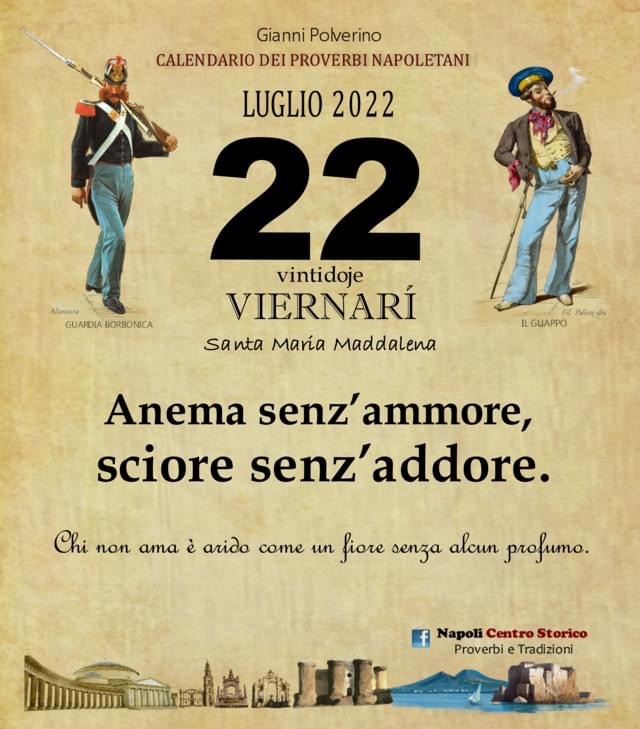 ‘O PRUVERBIO D’ ‘O JUORNO. Venerdì 22 luglio 2022