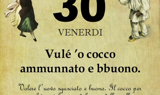 ‘O PRUVERBIO D’ ‘O JUORNO. Venerdì 30 agosto 2019 30/08/2019 binews.it ATTUALITA', EVIDENZA, Il Proverbio del Giorno 0 di Gianni Polverino Vulé ’o cocco ammunnato e bbuono. Volere l’uovo sgusciato e buono. Il cocco per i napoletani è l’uovo, dal verso della gallina. Locuzione riferita allo scansafatiche.