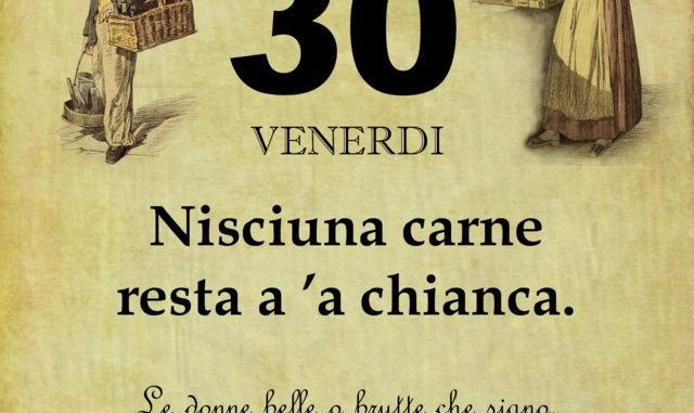 ‘O PRUVERBIO D’ ‘O JUORNO. Venerdì 30 novembre 2018 30/11/2018 binews.it ATTUALITA', EVIDENZA, Il Proverbio del Giorno 0 di Gianni Polverino Nisciuna carne resta a ’a chianca. Le donne belle o brutte che siano, trovano sempre un adeguata sistemazione