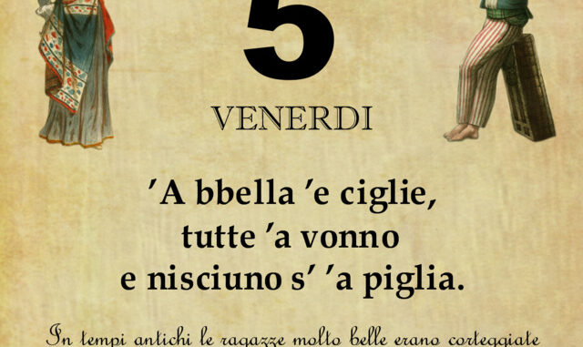 ‘O PRUVERBIO D’ ‘O JUORNO. Venerdì 5 giugno 2020 05/06/2020 binews.it ATTUALITA', EVIDENZA, Il Proverbio del Giorno 0 di Gianni Polverino ’A bbella ’e ciglie, tutte ’a vonno e nisciuno s’ ’a piglia. In tempi antichi le ragazze molto belle erano corteggiate da tutti ma nessuno pensava di sposarle.