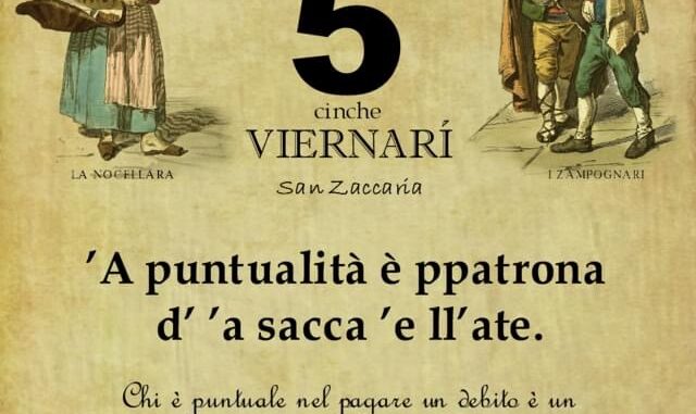 ‘O PRUVERBIO D’ ‘O JUORNO. Venerdì 5 novembre 2021 05/11/2021 binews.it ATTUALITA', EVIDENZA, Il Proverbio del Giorno 0 di Gianni Polverino ’A puntualità è ppatrona d’ ’a sacca ’e ll’ate. Chi è puntuale nel pagare un debito è un elemento di fiducia per ottenere futuri prestiti.