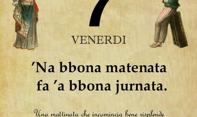 ‘O PRUVERBIO D’ ‘O JUORNO. Venerdì 7 febbraio 2020 07/02/2020 binews.it ATTUALITA', EVIDENZA, Il Proverbio del Giorno 0 di Gianni Polverino ’Na bbona matenata fa ’a bbona jurnata. Una mattinata che incomincia bene risplende per tutta la giornata.