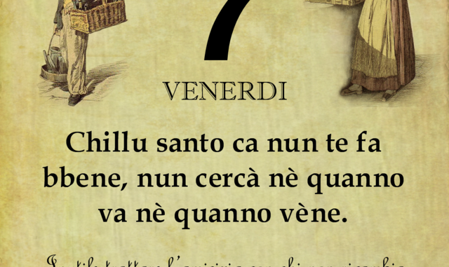 ‘O PRUVERBIO D’ ‘O JUORNO. Venerdì 7 settembre 2018 07/09/2018 binews.it ATTUALITA', EVIDENZA, Il Proverbio del Giorno 0 Chillu santo ca nun te fa bbene, nun cercà nè quanno va nè quanno vène. Inutile trattare l’amicizia con chi non ricambia l’affetto e i valori.