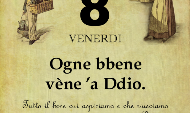 ‘O PRUVERBIO D’ ‘O JUORNO. Venerdì 8 giugno 2018 08/06/2018 binews.it ATTUALITA', Il Proverbio del Giorno 0 di Gianni Polverino Ogne bbene vène ’a Ddio. Tutto il bene cui aspiriamo e che riusciamo ad ottenere è sempre un dono di Dio.