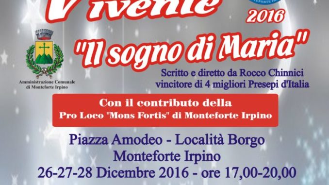 Il trittico della rappresentazione scenografica della Natività vivente si inaugura -dalle ore 17 alle ore 20,00- nel pomeriggio odierno, a Monteforte Irpino, per ripetersi con lo stesso orario domani, mentre il sipario calerà giovedì 28, con ambientazione nel cuore del centro storico a in piazza Amodeo, nella caratteristica frazione del Borgo di San Martino, su cui campeggiano gli imponenti ruderi che conservano e raccontano i fasti di quella ch’è una delle più imponenti fortezza-castello della Campania, realizzata dai longobardi per il controllo del territorio e della valle.