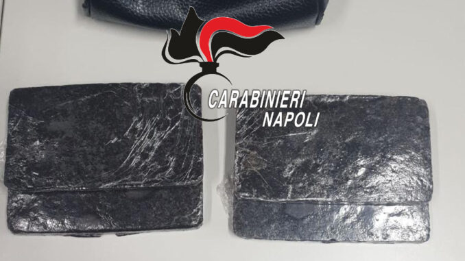 Recuperata la borsetta, all’interno della quale erano nascosti 5 panetti di hashish per complessivi 973 grammi, i militari hanno rintracciato e arrestato Solimeno.