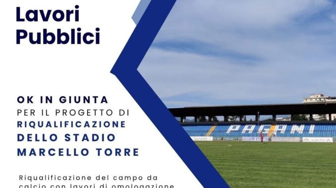 Nella fase successiva saranno programmati ulteriori interventi di riqualificazione degli spalti, compresi i settori della curva nord e della tribuna coperta. Il nuovo stadio si candida così a diventare un polo sportivo moderno e multifunzionale, a disposizione non solo del calcio, ma anche di altre discipline sportive, con un impatto positivo sull’intera comunità paganese.                                                                                                                                                                                                        Paganese, al via la riqualificazione dello stadio Marcello Torre: in arrivo campo in sintetico e spazi per l’atletica
