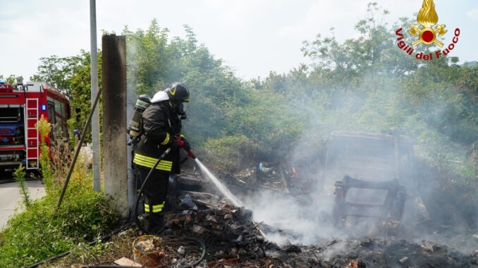 I Vigili del Fuoco di Avellino subito dopo le ore 14’00 di oggi 16 agosto, sono intervenuti nel territorio del comune di Pago Del Vallo di Lauro in via Nazionale, per un incendio che ha interessato un’area con al suo interno diversi veicoli in disuso e materiale di risulta. Due le squadre che hanno lavorato circa due ore per spegnere le fiamme e mettere in sicurezza il luogo. Sul posto una volante della Polizia di Stato e i Carabinieri, per i rilievi di propria competenza.