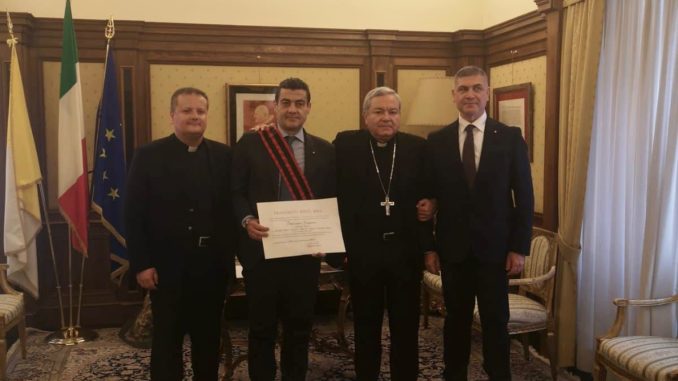 Il Pontefice, incontrando il generale Abagnara lo scorso 26 giugno 2019, aveva espresso il Suo profondo e vivissimo apprezzamento per l’opera di supporto alla popolazione locale, al dialogo interreligioso ed in particolare per la costruzione a Shama della Chiesa “Maria Decor Carmeli e San Giovanni XXIII Papa”, unica chiesa di rito latino nel sud del Libano, inaugurata con dedicazione da parte dell’Ordinario Militare per l’Italia, l’arcivescovo Santo MARCIANO’. Opere queste che, unitamente agli impegni volti a garantire la sicurezza nella regione, hanno inciso in maniera determinante alla stabilizzazione dell’area ed alla collaborazione tra le parti per intese di pace. L’Ordine pontificio di San Silvestro Papa (in latino: Ordo Sancti Silvestri Papae) è un ordine cavalleresco della Santa Sede. Prima del 1841, era universalmente conosciuto come uno degli ordini più antichi ed è considerato dal cerimoniale diplomatico, Ordine Cavalleresco di Prima Classe. I membri godono del privilegio del saluto militare da parte delle Guardie Svizzere, della precedenza nelle cerimonie ufficiali ed al rango apicale di Cavaliere di Gran Croce, il trattamento di “Eccellenza“.