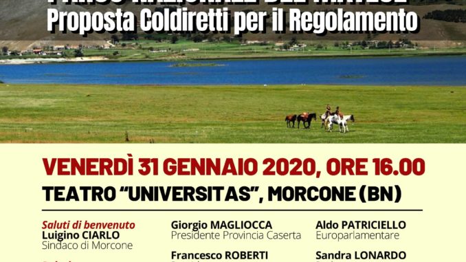 Dare un’anima al costituendo Parco Nazionale del Matese per scongiurare il rischio della desertificazione sociale ed economica. Con questo spirito le federazioni regionali Coldiretti della Campania e del Molise e le federazioni provinciali di Benevento, Caserta, Campobasso ed Isernia hanno invitato i 63 Comuni coinvolti con i rispettivi territori, gli imprenditori agricoli e gli esponenti politici ad una tavola rotonda che si terrà venerdì 31 gennaio 2020 alle ore 16 a Morcone, in provincia di Benevento, presso la sala teatro Universitas. Coldiretti presenterà e consegnerà agli amministratori locali e ai portatori d’interesse la propria proposta di Regolamento del Parco, ovvero lo strumento fondamentale per la governancedell’enorme area interessata, coniugando la tutela ambientale con l’agricoltura e con la sopravvivenza delle comunità.