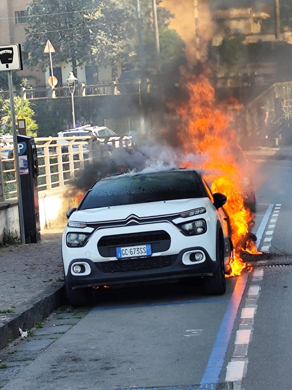 Attimi di forte tensione si sono vissuti nel pomeriggio di oggi a Pompei, dove un’automobile ha improvvisamente preso fuoco, rischiando di esplodere e coinvolgere altri veicoli in sosta. Solo il tempestivo intervento della Polizia Municipale e, subito dopo, dei Vigili del Fuoco ha evitato il peggio.