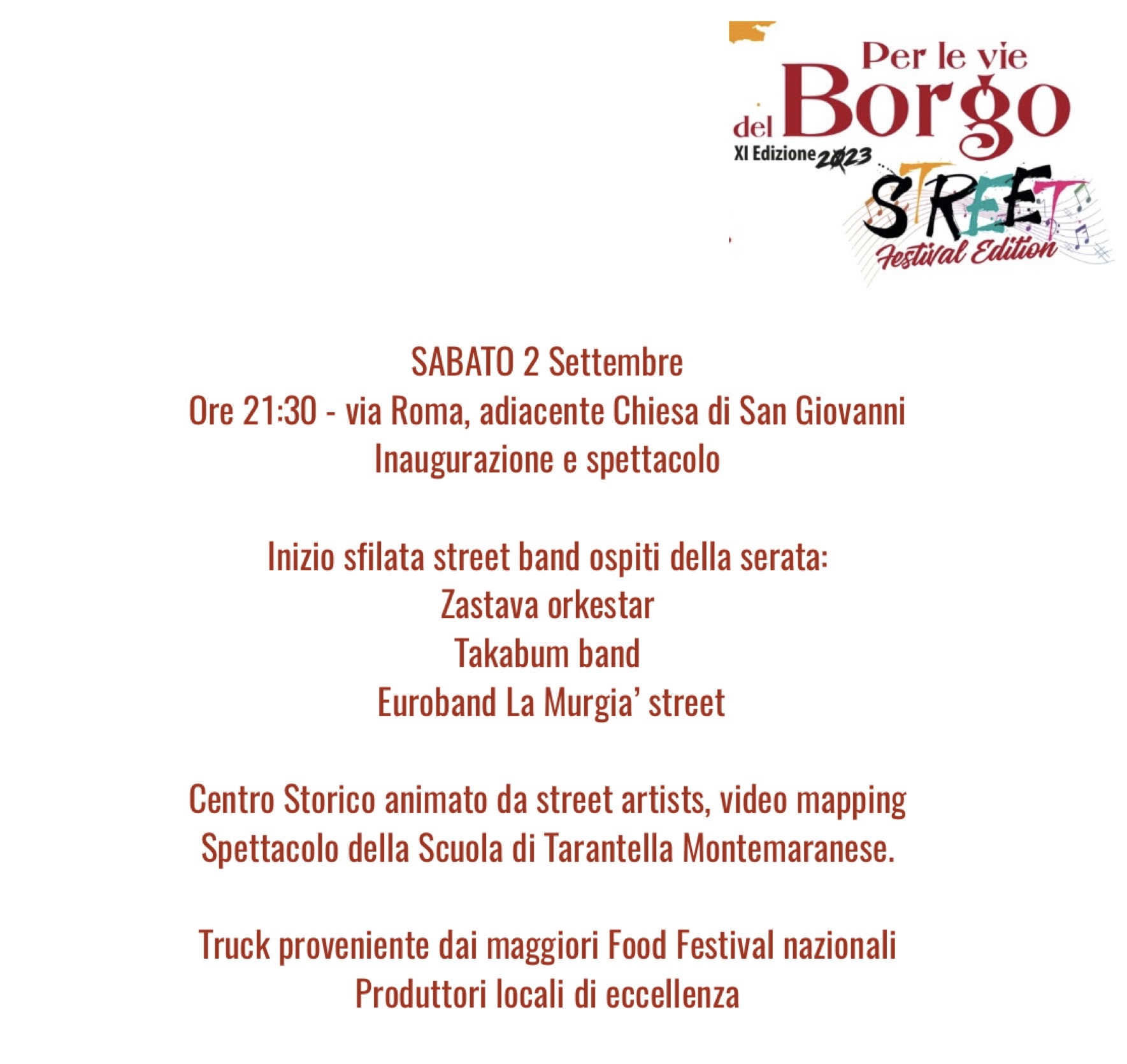 Il programma messo a punto è ricco. Ogni sera accanto alle 3 Street band provenienti da festival a livello nazionale, per ricordare i fasti dell’ originaria manifestazione ci sarà anche musica internazionale da strada.