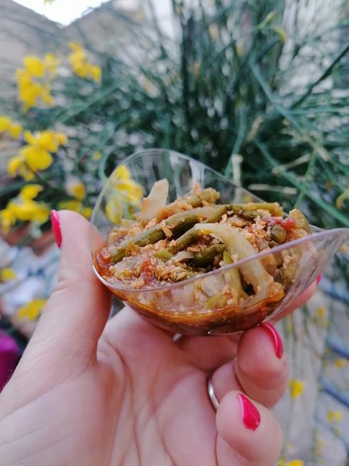 La conclusione della visita poi, con la degustazione di pietanze a base di asparago selvatico, è il più felice dei connubi tra location, gusto ed accoglienza da parte dei componenti dell’APS “Domenico Caracciolo” e dell’Amministrazione comunale, in particolare dell’Assessore alla Cultura, Francesco Caloia, che ha svolto anche la funzione di guida. In Largo Pace, nei pressi dell’istallazione scultorea “Le pietre raccontano” di Vincenzo Caputo ed Alessandro Battaglino, una sorta di memoriale per il terremoto dell’80, i visitatori hanno potuto degustare l’asparago nelle sue svariate declinazioni: dalle più tradizionali frittatine e zeppoline ad una sorta di insalata con asparago, patate e spec, dal cicatiello asparago, pancetta e pomodoro giallo, al “susciello”, piatto tipico della tradizione villamainese con asparago, pomodoro, uovo sbattuto e cipolla. Immancabile un bicchiere di rosso locale.