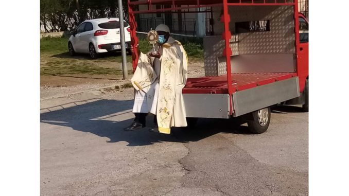 Benedizione speciale nel giorno di Pasqua per i fedeli di Petruro e Celzi frazioni di Forino dove il parroco Don Jean Claude  ha benedetto augurando la Santa Pasqua a bordo di un camioncino attraversando tutte le strade del circondario,  con in mano un’ostensorio. A Forino invece dirette streaming e Facebook delle messe celebrate a porte chiuse da Padre Mirra alle ore 9.30 nella Chiesa di San Biagio ed alle ore 17.00 da Padre  Marco Masi al Cimitero.  Da. Bio.