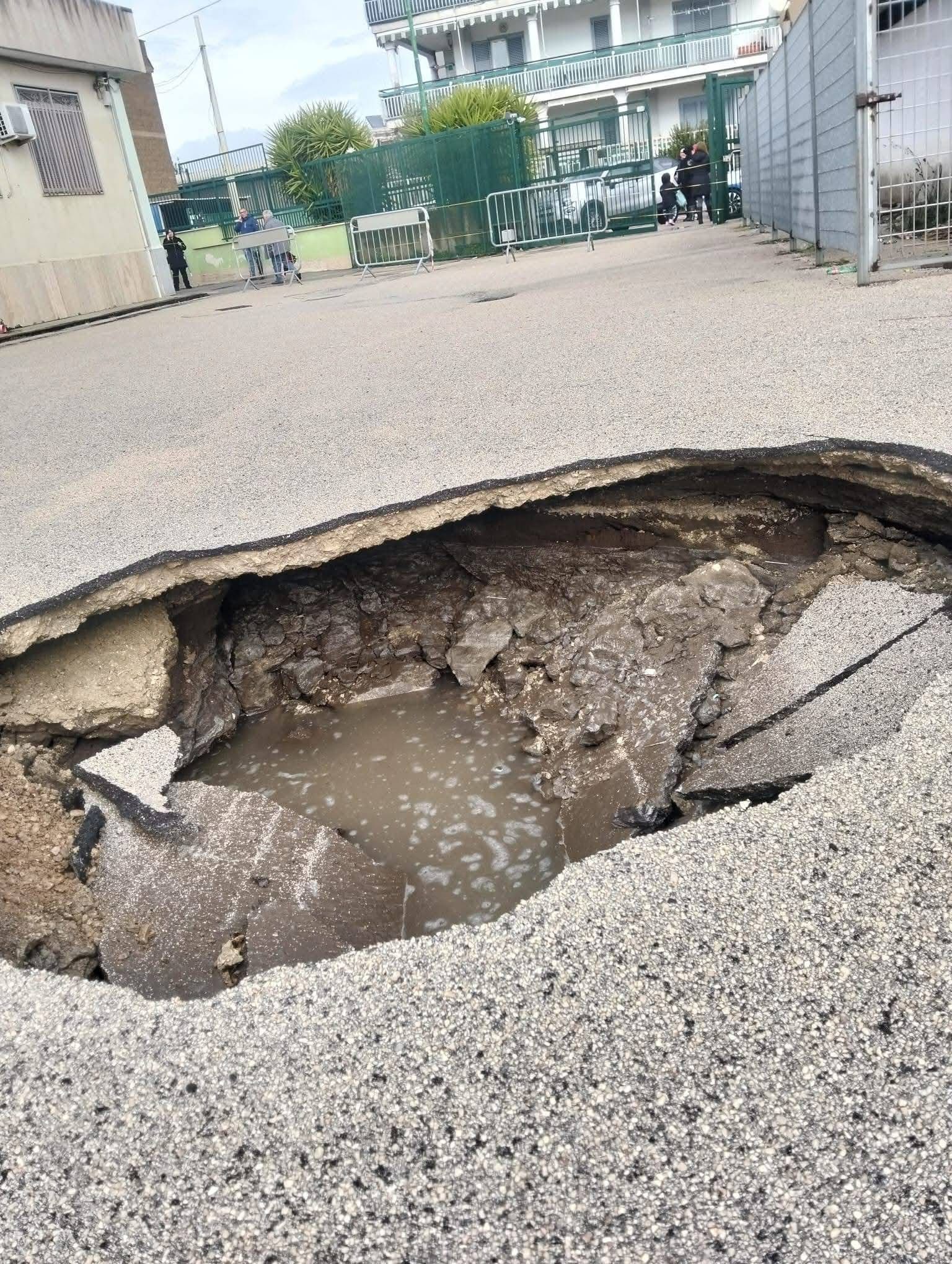 Piazzolla di Nola, voragine davanti alla scuola media Mameli (foto)