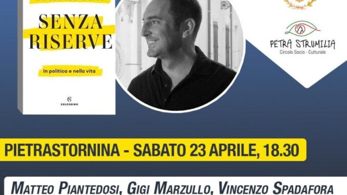 Un libro per raccontarsi senza più filtri l’ex Ministro dello Sport Vincenzo Spadafora parla della sua esperienza di vita e di uomo maturata finora. Un cammino importante nel libro “Senza Riserve” che presenterà a Pietrastornina sabato 23 aprile presso la sala consiliare “ dott. Vincenzo Rizzo” del Comune di Pietrastornina alle 18.30. Un’ iniziativa organizzata dal Circolo Socio Culturale PetraStrumilia presieduto dal Prefetto Matteo Piantedosi. Una presentazione a tre voci : Gigi Marzullo, Matteo Piantedosi e Vincenzo Spadafora con la partecipazione di Rosalia Porcaro. Un libro scritto in prima persona in cui l’ex Ministro racconta le proprie origini, radici ,sentimenti, emozioni scelte. Un lavoro certosino , tutto cuore, incondizionatamente, che lascia un messaggio importante a chi lo legge: la consapevolezza che la differenza è l’essenza dell’umanità. Per chiunque non possa partecipare l’evento sarà trasmesso in diretta sulla pagina Facebook.com/Strumilia