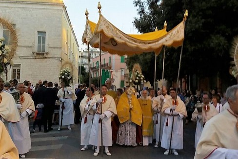 Pollena Trocchia torna a celebrare la tradizionale solennità del Corpus Domini con un’iniziativa intercomunitaria che coinvolgerà ciascuna delle tre parrocchie del territorio: San Giacomo Apostolo, Santissima Annunziata e San Gennaro. L’appuntamento è per domenica 3 giugno alle ore 19, con la santa messa presso la chiesa di San Giacomo Apostolo concelebrata dai sacerdoti di Pollena Trocchia. A seguire, la tradizionale processione, che attraverserà Corso Umberto I, via Fusco, via Roma e raggiungerà Piazza Capece Minutolo, nel borgo Trocchia, dove ci sarà l’omelia e la solenne benedizione dei partecipanti. Il Corpus Domini rappresenta la rievocazione della liturgia della Messa nella Cena del Giovedì Santo. “Siamo lieti che questa processione, andata un po’ persa negli anni, sia stata finalmente recuperata grazie all’impegno delle nostre comunità parrocchiali. Invitiamo i cittadini a prendere parte a questo momento di devozione e comunione sia partecipando alla processione sia realizzando le tradizionali infiorate lungo le strade da essa attraversate” ha detto il Sindaco di Pollena Trocchia, Francesco Pinto.