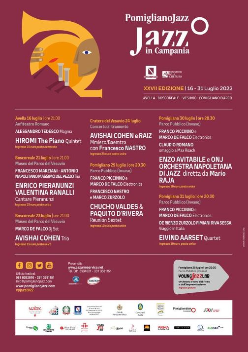 Programmato e finanziato dalla Regione Campania e dal Ministero della Cultura, il festival è organizzato dalla Fondazione Pomigliano Jazz con Scabec, in partenariato con l’Ente Parco Nazionale del Vesuvio e i comuni di Pomigliano d’Arco Avella.