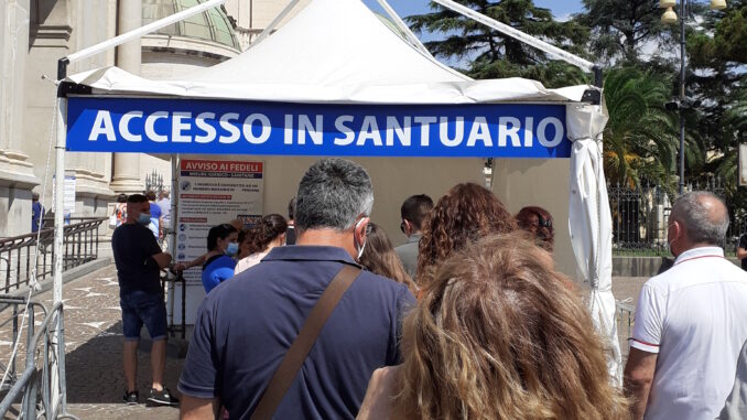 Pompei, anche in estate, come mancare ad una visita? Una preghiera nel Santuario non è cosa proprio difficile, malgrado l’obbligo della mascherina.