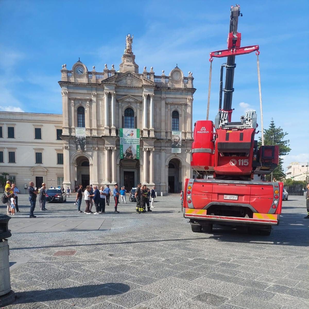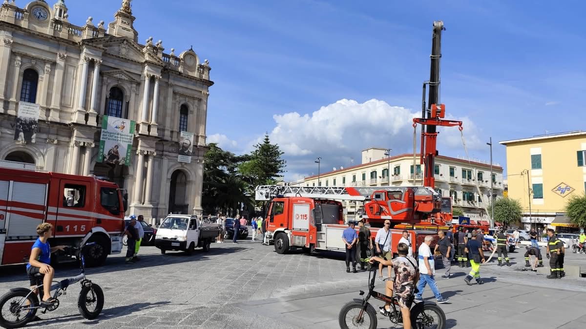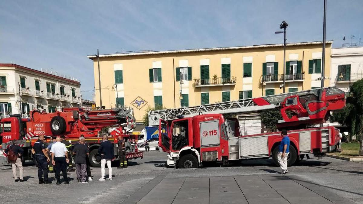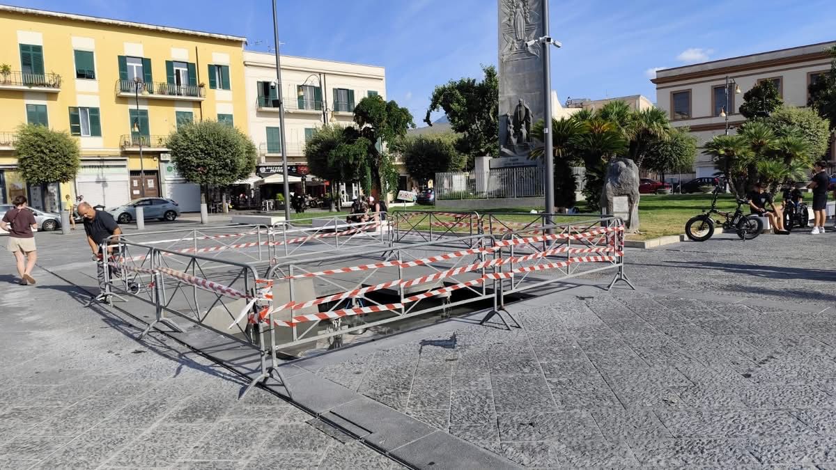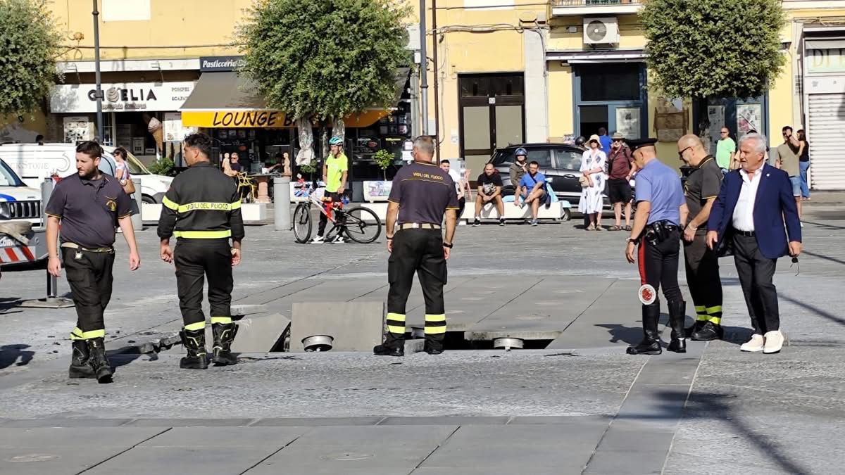 POMPEI — Un intervento ordinario dei Vigili del Fuoco si è trasformato in un incidente inatteso nel primo pomeriggio di domenica, quando un camion del corpo è sprofondato all’interno di una fontana a raso appena inaugurata nella piazza principale della città.