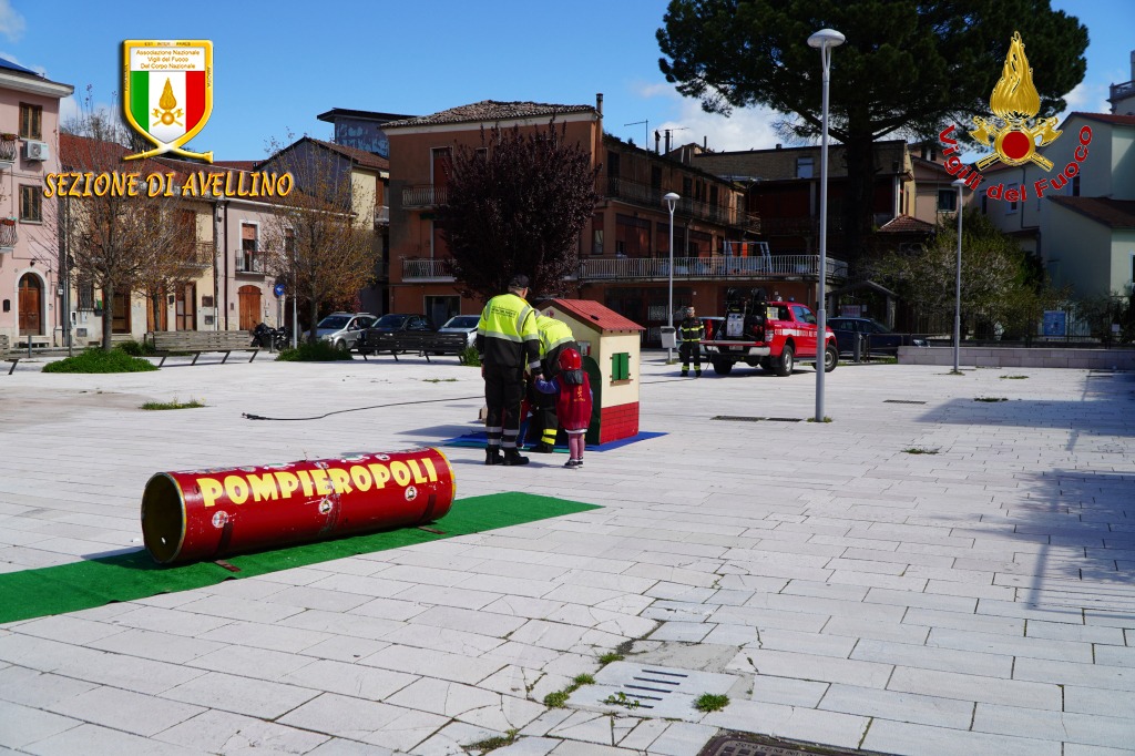 Durante la mattinata di oggi 26 aprile, i Vigili del Fuoco di Avellino unitamente al personale dell’Associazione Nazionale del Corpo sezione di Avellino, nell’ambito del laboratorio educativo didattico, hanno svolto una Pompieropoli per i bambini della Scuola dell’infanzia di Valle. Il percorso ludico formativo si prefigge di formare le nuove generazioni sui temi della prevenzione e sicurezza nella scuola e nella vita di tutti i giorni, e prevede altre visite anche presso le scuole dell’infanzia di viale Italia e via Colombo, sempre ad Avellino. L’applauso finale dei piccoli “Pompieri” per un giorno ha sancito la perfetta riuscita dell’iniziativa.