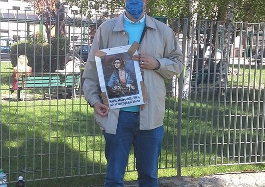 Vorrei proporre una mia importante iniziativa fatta lo scorso 8 maggio 2020, che per la Chiesa Cattolica ricordava due ricorrenze molto note di grande rilievo: l’anniversario dell’Apparizione di San Michele Arcangelo sul monte Gargano e la Solennità della Madonna del Rosario di Pompei, con la relativa supplica da recitarsi alle ore 12. Ho deciso in questa santa giornata, come si puo’ desumere dalla foto e dal video inviati, dopo aver inviato il solito avviso di comunicazione con la Pec professionale all’Ufficio del Gabinetto della Questura di Benevento, di fare un momento di preghiera dalle ore 10 alle 12.30 in prossimità dell’ingresso dell’ospedale San Pio, per pregare non solo in riparazione all’aborto chimico e chirurgico come sto facendo da tre anni, ma anche per tutti i malati e i defunti di Coronavirus, senza il consueto volantinaggio, rispettando naturalmente i decreti governativi del distanziamento sociale e indossando la relativa mascherina, resa obbligatoria dall’ordinanza del Governatore De Luca lo scorso 2 maggio. Sono innanzitutto tre i motivi che mi hanno indotto a fare questa iniziativa in un momento cosi delicato per tutti, in cui regna ovunque ancora la paura di ricominciare a vivere, dopo il lockdown di due mesi: 1) Ho sofferto molto come tutti per la privazione della santa messa pubblica, che sarà nuovamente celebrata dal prossimo 18 maggio, come ho scritto in tanti contributi pubblicati dal suo giornale. Vedere il culto pubblico, tutelato dall’art. 19 della nostra Carta Costituzionale relegato nella clandestinità è stato un dolore incredibile e, pertanto, volevo dare una testimonianza pubblica di Fede, come del resto ho sempre fatto in questi ultimi tre anni, al fine di dire con i fatti e non con le parole che NON MI RASSEGNAVO ALLA MORTE DEL CULTO PUBBLICO DELLA FEDE CATTOLICA, in particolare di DIRITTO DIVINO, con l’art. 19 che recita:” Tutti hanno diritto di professare liberamente la propria fede religiosa in qualsiasi forma, individuale o associata, di farne propaganda e di esercitarne in privato o in pubblico il culto, purché non si tratti di riti contrari al buon costume”. 2) Oltre a questo aspetto, ho preso questa decisione in questo momento di ripresa dopo la fase acuta dell’emergenza sanitaria legata al Coronavirus perché stesso Nostro Signore Gesu’ Cristo per chi crede ci invita a NON AVERE PAURA, A NON BARRICARCI NELLE NOSTRE MURA, MA AD AVERE IL CORAGGIO DI TESTIMONIARE PUBBLICAMENTE LA NOSTRA FEDE,costi quel costi, come disse Gesu’ nel Vangelo di San Matteo al capitolo 5:” Voi siete il sale della terra; ma se il sale perdesse il sapore, con che cosa lo si potrà render salato? A null’altro serve che ad essere gettato via e calpestato dagli uomini. Voi siete la luce del mondo; non può restare nascosta una città collocata sopra un monte, né si accende una lucerna per metterla sotto il moggio, ma sopra il lucerniere perché faccia luce a tutti quelli che sono nella casa. Così risplenda la vostra luce davanti agli uomini, perché vedano le vostre opere buone e rendano gloria al vostro Padre che è nei cieli”. 3) Infine, con la preghiera solitaria e con la recita incessante del SANTO ROSARIO, la preghiera piu’ amata dalla Madonna soprattutto in questo mese di maggio a lei dedicato, ho voluto dare non soltanto un messaggio di speranza a tutti, ma ho voluto anche dire che, al di là delle norme sanitarie, che vanno comunque rispettate, OCCORRE RIMETTERE AL CENTRO DELLE NOSTRE VITE NOSTRO SIGNORE GESU’ CRISTO E LA SUA DIVINA REGALITA’ SOCIALE, che dirige in modo misterioso e provvidenziale la storia di ciascuno. L’uomo moderno non ha unicamente bisogno di mangiare, di dormire e di passeggiare per il benessere psico- fisico, tutte attività ottime, ma legate ad una dimensione materiale, ma ha bisogno soprattutto di DIO PER IL SUO BENESSERE SPIRITUALE E PER LA SALVEZZA DELLA SUA ANIMA. Una concezione come quella attuale, portata avanti dal Governo, in cui E’ NECESSARIO ANDARE AL SUPERMERCATO, IN FARMACIA, ALLE POSTE O AI TABACCHINI, mentre non è indispensabile andare a pregare, con tanti sacerdoti e fedeli multati in modo assurdo e illegittimo, denota proprio questo drammatico aspetto, che il mio momento di preghiera ha voluto confutare, sempre nel rispetto dell’Ordinamento Costituzionale vigente e dell’amore per ciascun essere umano, da quelli concepiti nei grembi delle loro madri fino a quelli malati e defunti. Vorrei concludere con la bellissima testimonianza di Eleazaro, episodio tratto dal secondo Libro dei Maccabei, che ci invita ad avere il coraggio della testimonianza fino al martirio se necessario, per dare esempi positivi di santità soprattutto ai piu’ giovani:” In quei giorni, un tale Eleàzaro, uno degli scribi più stimati, uomo già avanti negli anni e molto dignitoso nell’aspetto della persona, veniva costretto ad aprire la bocca e a ingoiare carne suina. Ma egli, preferendo una morte gloriosa a una vita ignominiosa, s’incamminò volontariamente al supplizio, sputando il boccone e comportandosi come conviene a coloro che sono pronti ad allontanarsi da quanto non è lecito gustare per attaccamento alla vita. Quelli che erano incaricati dell’illecito banchetto sacrificale, in nome della familiarità di antica data che avevano con quest’uomo, lo tirarono in disparte e lo pregarono di prendere la carne di cui era lecito cibarsi, preparata da lui stesso, e fingere di mangiare le carni sacrificate imposte dal re, perché, agendo a questo modo, sarebbe sfuggito alla morte e avrebbe trovato umanità in nome dell’antica amicizia che aveva con loro. Ma egli, facendo un nobile ragionamento, degno della sua età e del prestigio della vecchiaia, della raggiunta veneranda canizie e della condotta irreprensibile tenuta fin da fanciullo, ma specialmente delle sante leggi stabilite da Dio, rispose subito dicendo che lo mandassero pure alla morte. «Poiché – egli diceva – non è affatto 