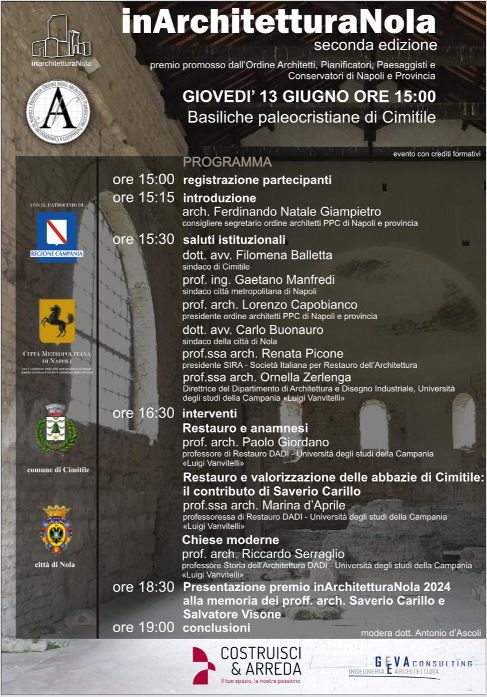 Nella suggestiva location delle basiliche paleocristiane di Cimitile, si svolgerà la seconda edizione di InArchitettura evento promosso dall’Ordine Architetti, Pianificatori, Paesaggisti e Conservatori di Napoli e Provincia.