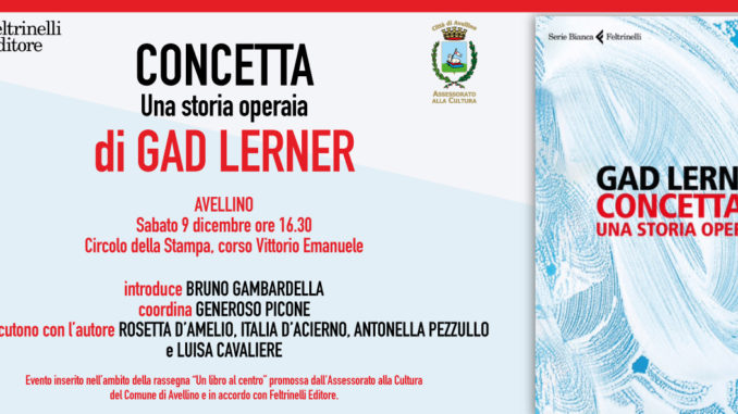 Sabato 9 dicembre 2017, alle ore 16.30, presso il Circolo della stampa di Avellino (Corso Vittorio Emanuele) si terrà la presentazione dell’ultimo lavoro di Gad Lerner, “CONCETTA Una storia operaia.