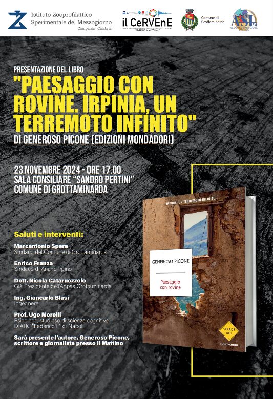 Sabato 23 novembre, in occasione del 44° anniversario del terremoto a Grottaminarda si terrà la presentazione del libro di Generoso Picone “Paesaggio con rovine. Irpinia, un terremoto infinito”, edito da Mondadori per la collana “Strade Blu”.