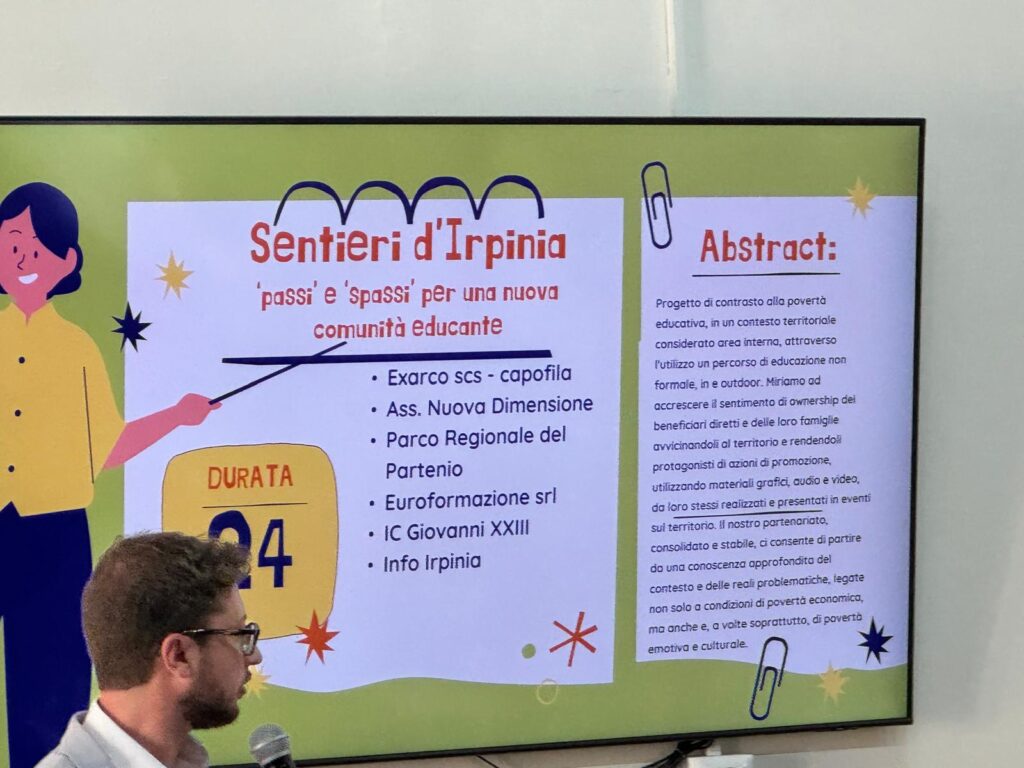 Oggi, presso la scuola Parini di Baiano, è stato presentato il progetto “Sentieri d’Irpinia – Passi e Spassi per una nuova comunità educante”. Questo entusiasmante progetto si rivolge ai giovani di età compresa tra 11 e 17 anni residenti nei 13 Comuni dell’Ambito A6, con l’obiettivo di promuovere la libera espressione delle loro capacità, talenti e aspirazioni personali, incrementando l’autoconsapevolezza e il desiderio di affermazione.