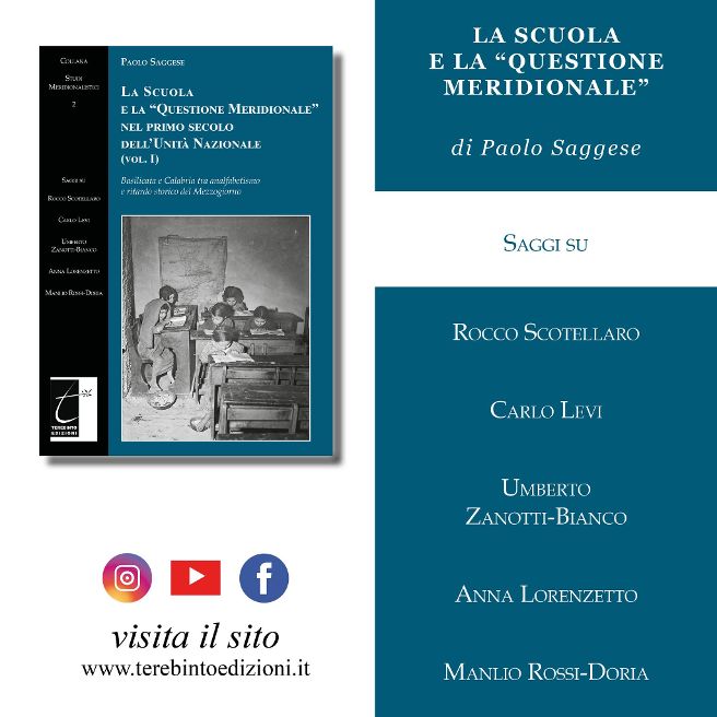 Presentazione ufficiale domani pomeriggio, venerdì 5 maggio 2023, alle 18.00 presso la biblioteca “Fiorentino Sullo” di Castelvetere sul Calore per il nuovo libro del Prof. Paolo Saggese dal titolo “LA SCUOLA E LA “QUESTIONE MERIDIONALE” NEL PRIMO SECOLO DELL’UNITÀ NAZIONALE (vol. I)”, edizioni Il Terebinto.