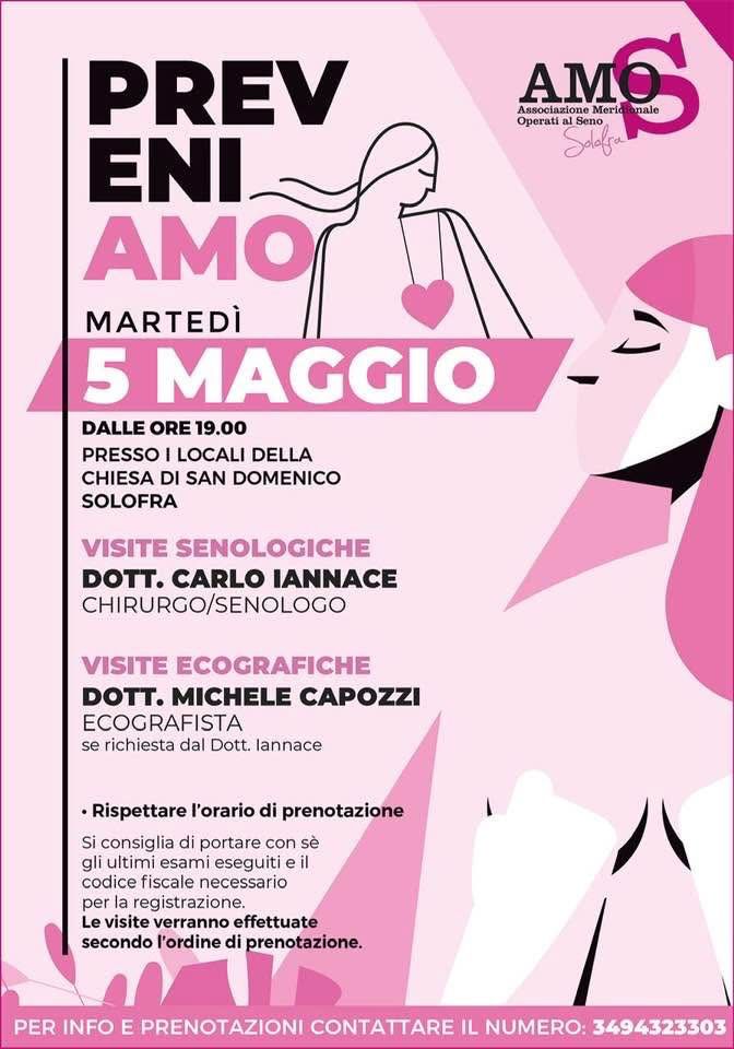 La prevenzione torna al centro dell’attenzione con l’iniziativa “Preveniamo”, promossa dall’associazione AMOS Solofra, che si terrà martedì 5 maggio a partire dalle ore 19:00 presso i locali della Chiesa di San Domenico.
