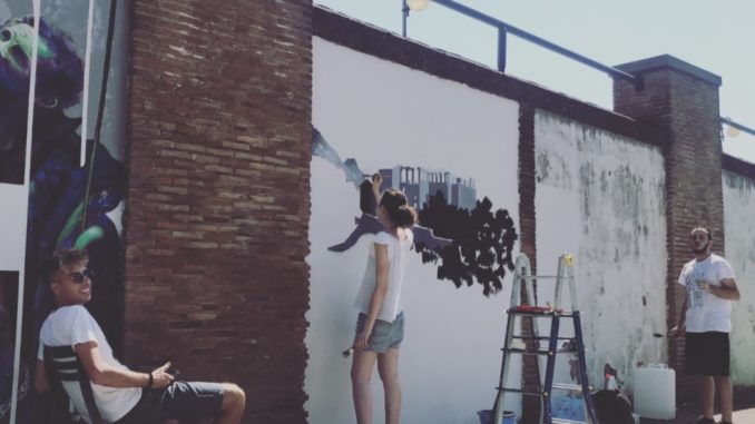 Pomeriggio d’estate. Tè alla pesca con granita al limone dentro: usanze locali. Primo giorno di Mamm ‘ell’Art, organizzato dalla Pro Loco Lauro. Dalle 10.30 sotto il sole rovente di luglio, il disegnatore milanese Gabriele Falzone ed una sua collaboratrice, realizzano un nuovo murales per la seconda edizione del festival artistico di Lauro. Il disegno rappresenta l’incendio al castello Lancellotti ed è il secondo murales degli ultimi anni per il paese, dopo gli affreschi naif realizzati negli anni ’70 in piazza Mercato, ora in uno stato di abbandono. Infatti già l’estate scorsa, altri due autori milanesi, Omer & d-Egon sempre nell’ambito di Mamm’ell’Art hanno raffigurato una loro versione dei patroni di Lauro S.Sebastiano e S.Rocco.