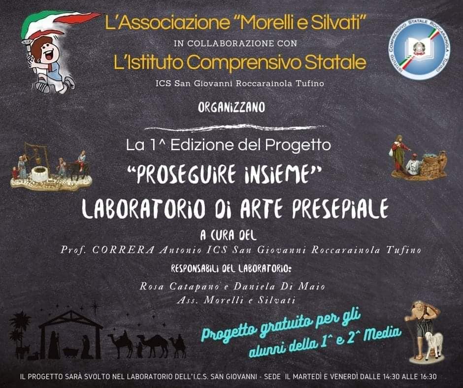 L’associazione “Morelli e Silvati” e l’Istituto Comprensivo Statale “San Giovanni” guardano con entusiasmo alla prima edizione del laboratorio “Proseguire Insieme – Laboratorio di Arte Presepiale” e sperano che questa sia solo l’inizio di un’avventura educativa duratura e significativa per gli studenti di Roccarainola.