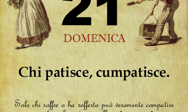 “Chi patisce, cumpatisce. Sulo chi soffre o ha sufferto po’ cumpiatì e ccapì overamente a cchi se trova dint’ê stessi cundizzione.” Solo chi soffre o ha sofferto può veramente compatire e comprendere chi si trova nelle medesime condizioni.