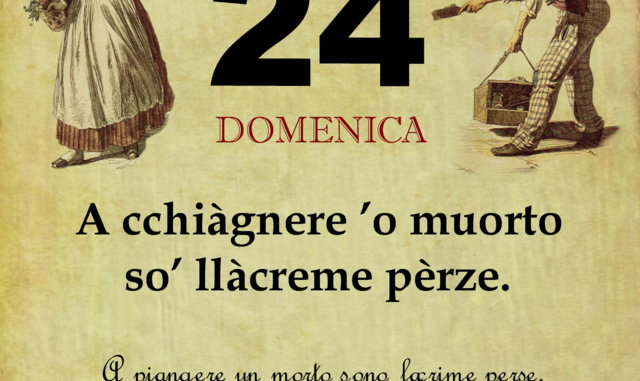 ‘O PRUVERBIO D’ ‘O JUORNO. Domenica 24 dicembre 2017 24/12/2017 binews.it ATTUALITA', Il Proverbio del Giorno 0 A cchiàgnere ’o muorto so’ llàcreme pèrze. A piangere un morto sono lacrime perse, perché non giova né al vivo, né al morto.