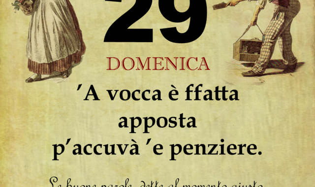 ‘O PRUVERBIO D’ ‘O JUORNO. Domenica 29 ottobre 2017 29/10/2017 binews.it ATTUALITA', Il Proverbio del Giorno 0 A vocca è ffatta apposta p’accuvà ’e penziere. Le buone parole, dette al momento giusto, possono fare miracoli.