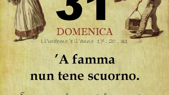 ‘O PRUVERBIO D’ ‘O JUORNO. Domenica 31 dicembre 2017 31/12/2017 binews.it ATTUALITA', Il Proverbio del Giorno 0 ’A famma nun tene scuorno. Se una persona ha veramente fame non esita a chiedere l’elemosina o cercare altre umilianti soluzioni.