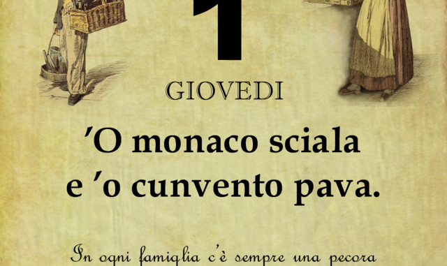 ‘O PRUVERBIO D’ ‘O JUORNO. Giovedì 1 Marzo 2018 01/03/2018 binews.it ATTUALITA', EVIDENZA, Il Proverbio del Giorno 0 O monaco sciala e ’o cunvento pava. In ogni famiglia c’è sempre una pecora nera che agisce a danno degli altri.
