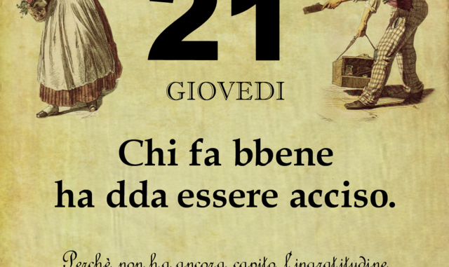 ‘O PRUVERBIO D’ ‘O JUORNO. Giovedì 21 dicembre 2017 21/12/2017 binews.it ATTUALITA', Il Proverbio del Giorno 0 Chi fa bbene ha dda essere acciso. Perchè non ha ancora capito l‘ingratitudine e la irriconoscenza umana.