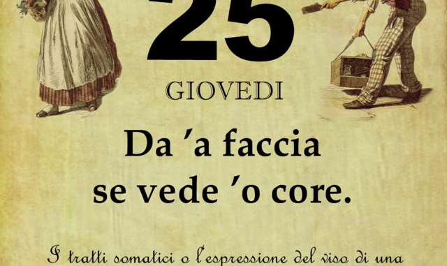 ‘O PRUVERBIO D’ ‘O JUORNO . Giovedì 25 maggio 2017 25/05/2017 binews.it ATTUALITA', Il Proverbio del Giorno 0 “Da ’a faccia se vede ’o core.” I tratti somatici o l‘espressione del viso di una persona sono lo specchio dei suoi sentimenti.