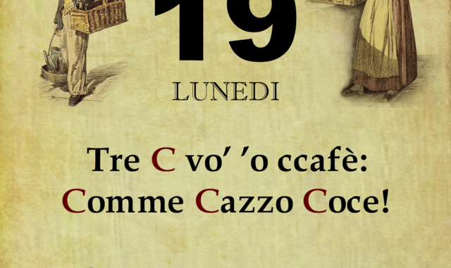 ‘O PRUVERBIO D’ ‘O JUORNO . Lunedì 19 febbraio 2018 19/02/2018 binews.it ATTUALITA', EVIDENZA, Il Proverbio del Giorno 0 Tre C vo’ ’o ccafè: Comme Cazzo Coce! Le tre “C” del caffè napoletano.