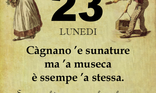 ‘O PRUVERBIO D’ ‘O JUORNO. Lunedì 23 ottobre 2017 23/10/2017 binews.it ATTUALITA', Il Proverbio del Giorno 0 Càgnano ’e sunature ma ’a museca è ssempe ’a stessa. Specie in politica possono cambiare gli uomini ma i profittatori ci saranno sempre.