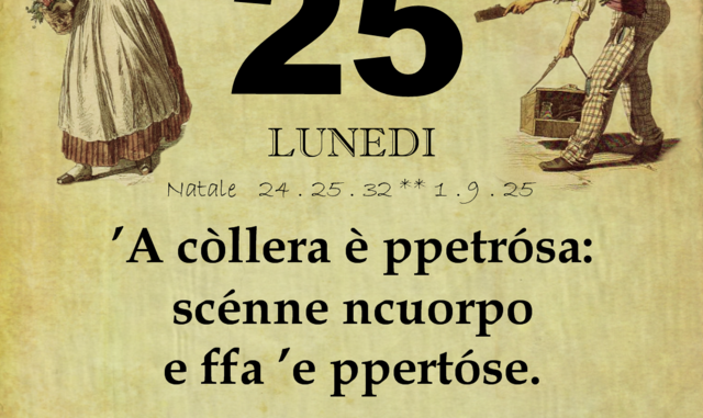 ‘O PRUVERBIO D’ ‘O JUORNO. Lunedì 25 dicembre 2017 25/12/2017 binews.it ATTUALITA', Il Proverbio del Giorno 0 ’A còllera è ppetrosa: scénne ncuorpo e ffa ’e ppertose. Irritarsi finisce a tutto danno di colui che si arrabbia.