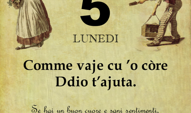 Comme vaje cu ’o còre Ddio t’ajuta.   Se hai un buon cuore e sani sentimenti, Iddio certamente ti aiuterà.